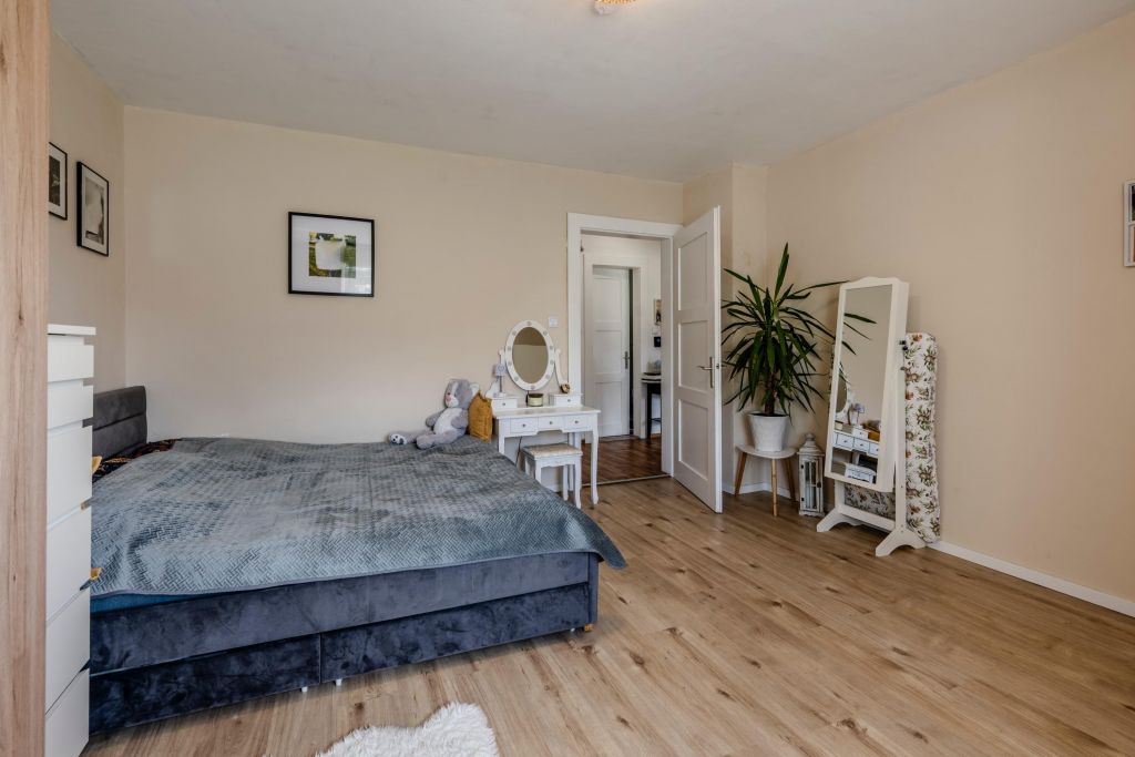 Die aktuell vermietete Obergeschosswohnung überzeugt mit Helligkeit und einem fantastischen Blick auf die Rosenburg. Auch hier wurde über die Jahre hinweg immer liebevoll renoviert, sodass sie dem heutigen Standard absolut entspricht.